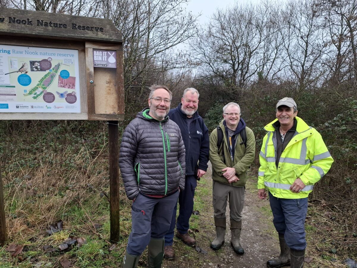 On Saturday 7th February at Raw Nook LNR, our conservation group held a highly important and productive meeting with Richard Perham, Countryside Officer for Countryside and Rights of Way(second left), and David Campbell, Biodiversity Officer(far left)—both representing Bradford Council.